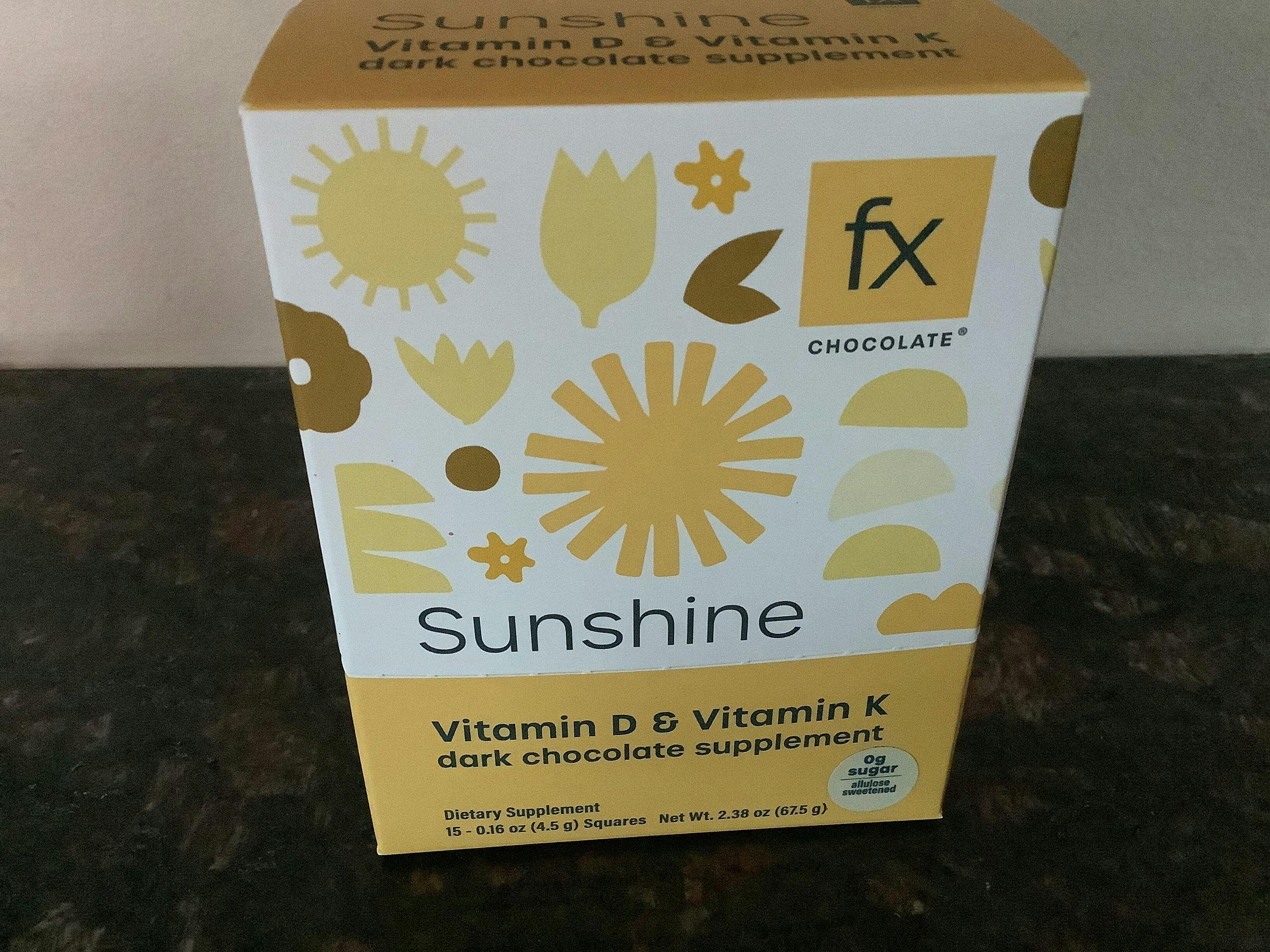 Fx Sunshine is a synergistic blend of vitamin D and bioavailable forms of vitamin K infused in 60% dark chocolate that works to promote bone health, immune function, and a positive mental outlook.* This formula combines 50 mcg (2,000 IU) vitamin D3 and 1 mg vitamin K2 and 500 mcg vitamin K1 per serving. Fx Sunshine may help balance the body's calcium needs while promoting bone strength and supporting immune health.*